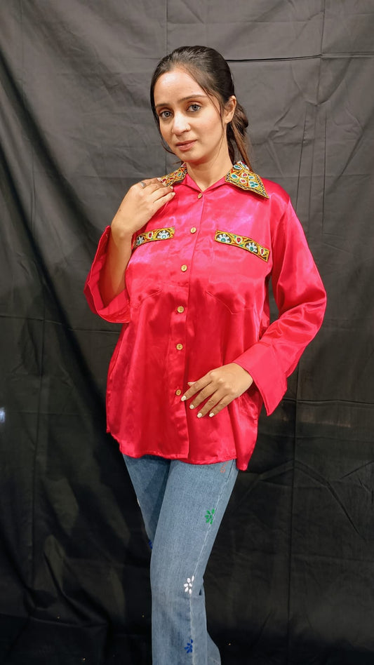 "EMI" PLAIN MASHRU PINK WOMEN SHIRT