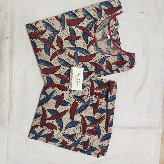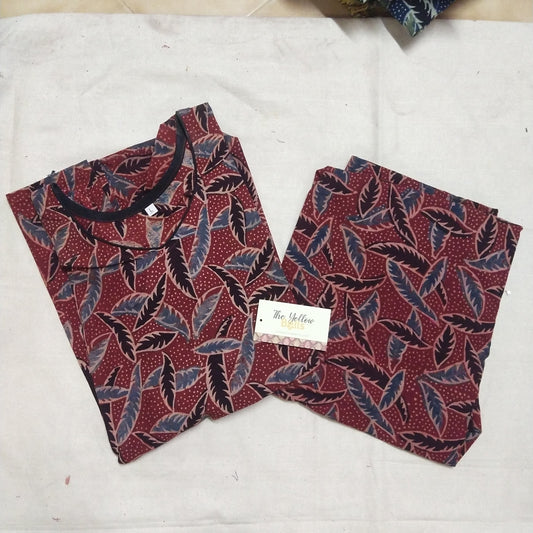 'Mayra' Maroon handblock cotton dhoti co-ord set