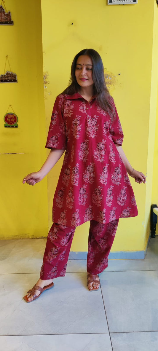 'Mayra' Blue & Maroon Natural Dhoti Co-ord set