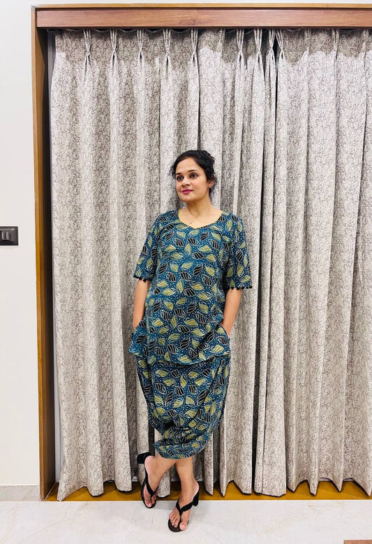 BLUE PLAIN KATHA COTTON CO-ORD STE