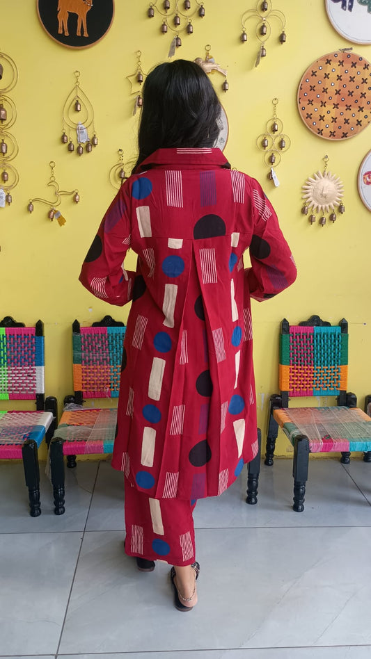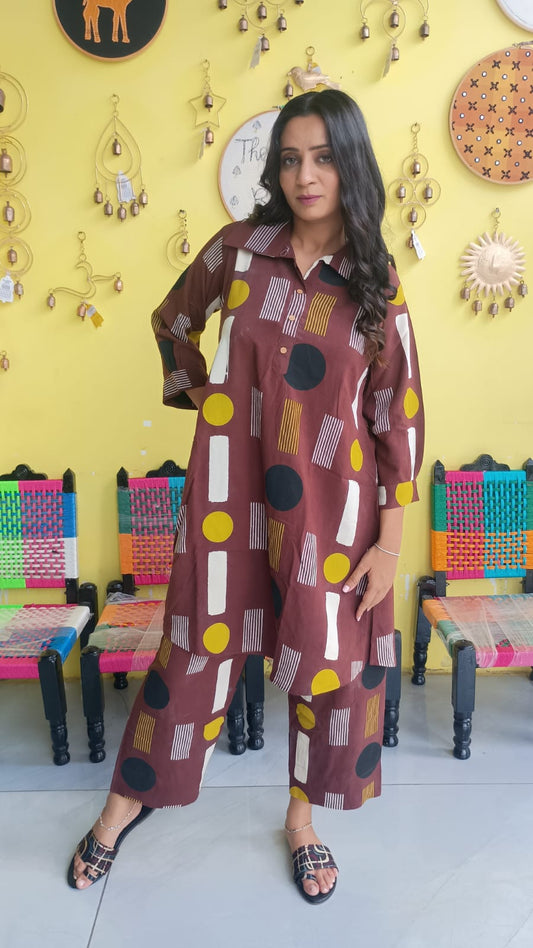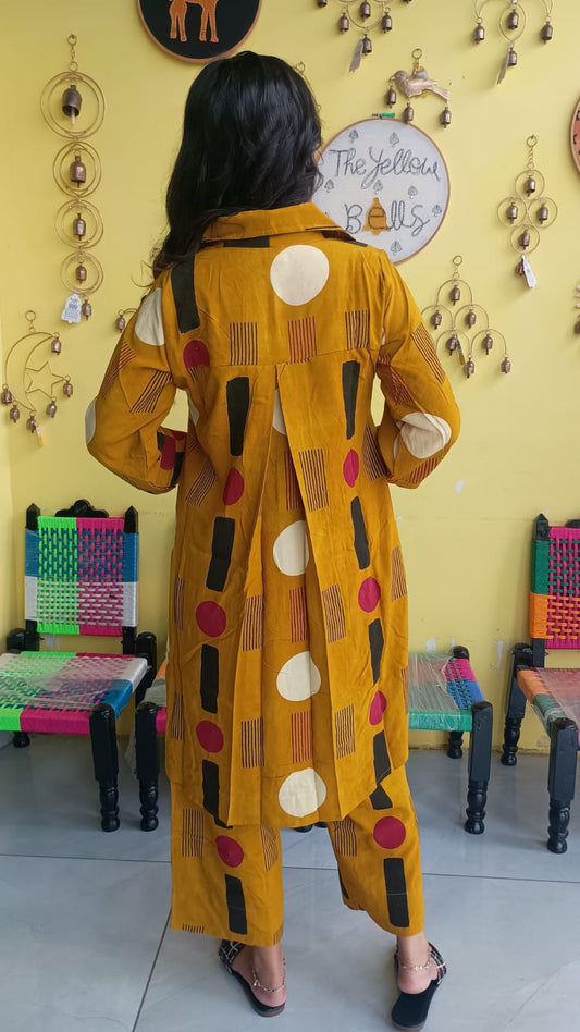 'Mayra' Yellow & Maroon Natural cotton dhoti co-ord set