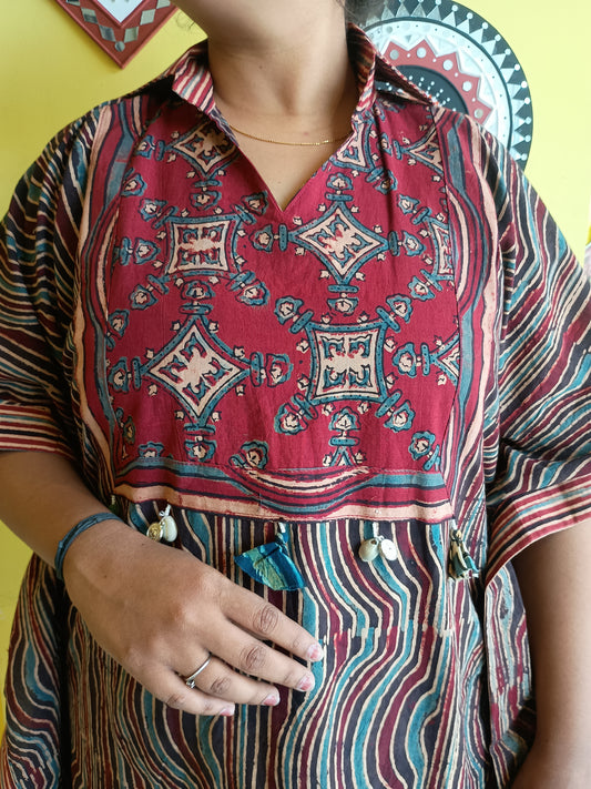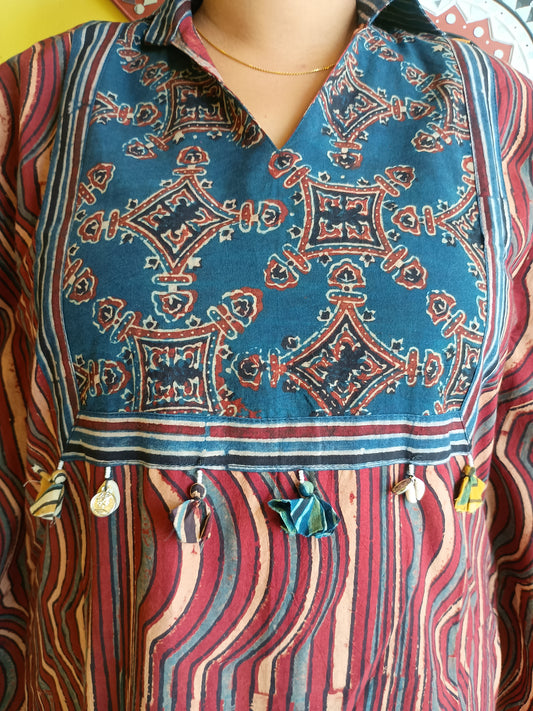 *Varni* Ajrakh rayon A line kurti
