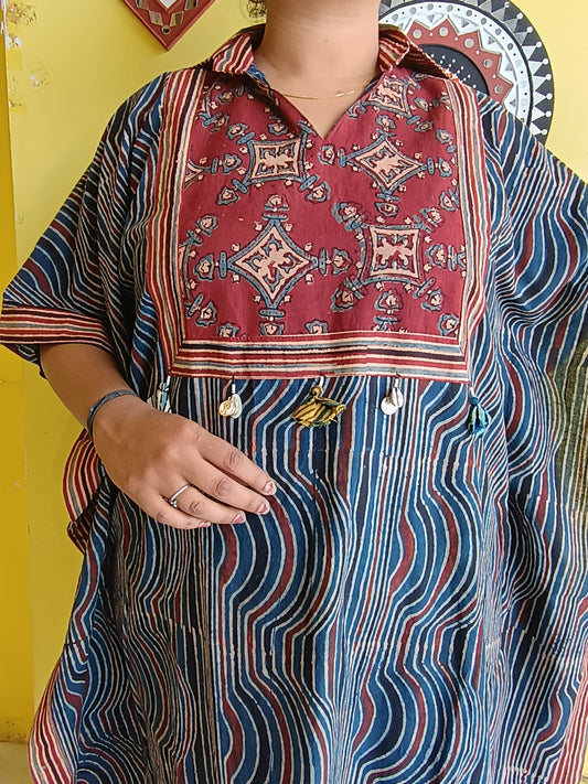 "Somya"Natural handblock cotton free size long kaftan