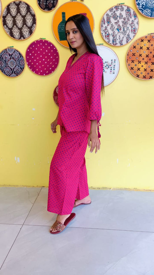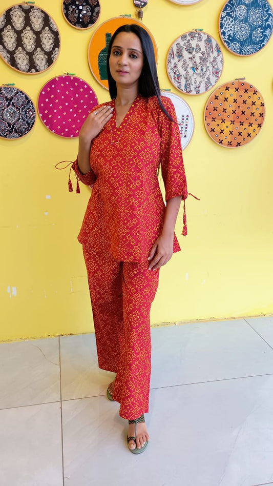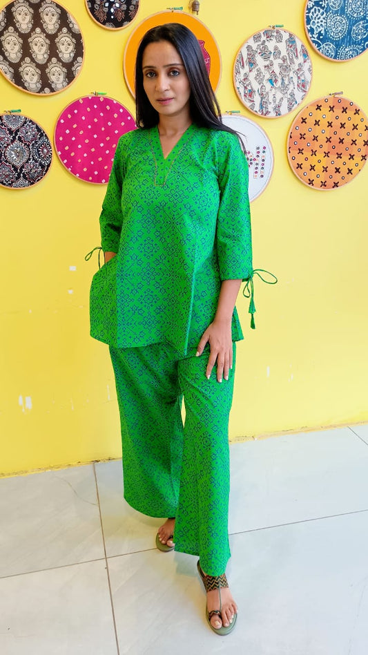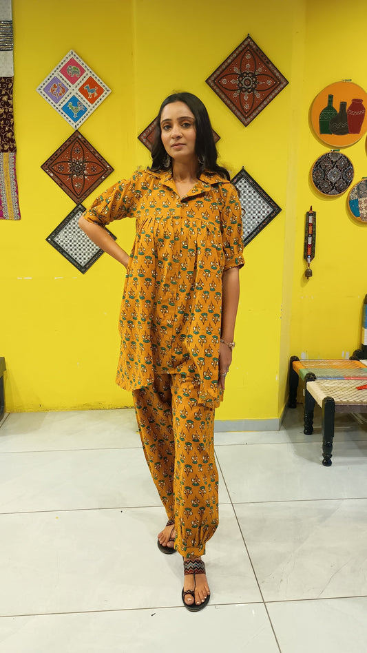 "Ankita" Natural handblock cotton kaftan style co-ord set