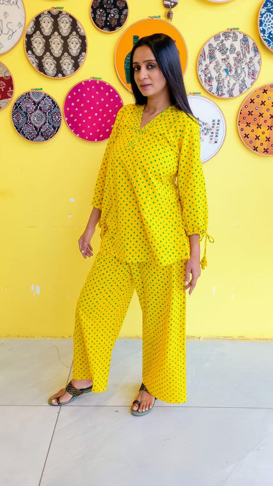 "Ankita" Natural cotton mirror work kaftan style co-ord set