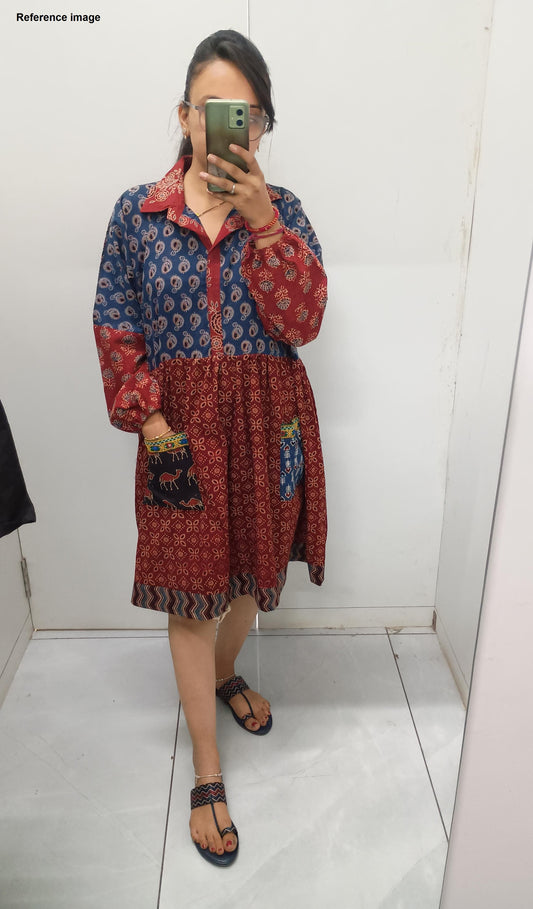 "Veena" Ajrakh handblock cotton long frock style kurti