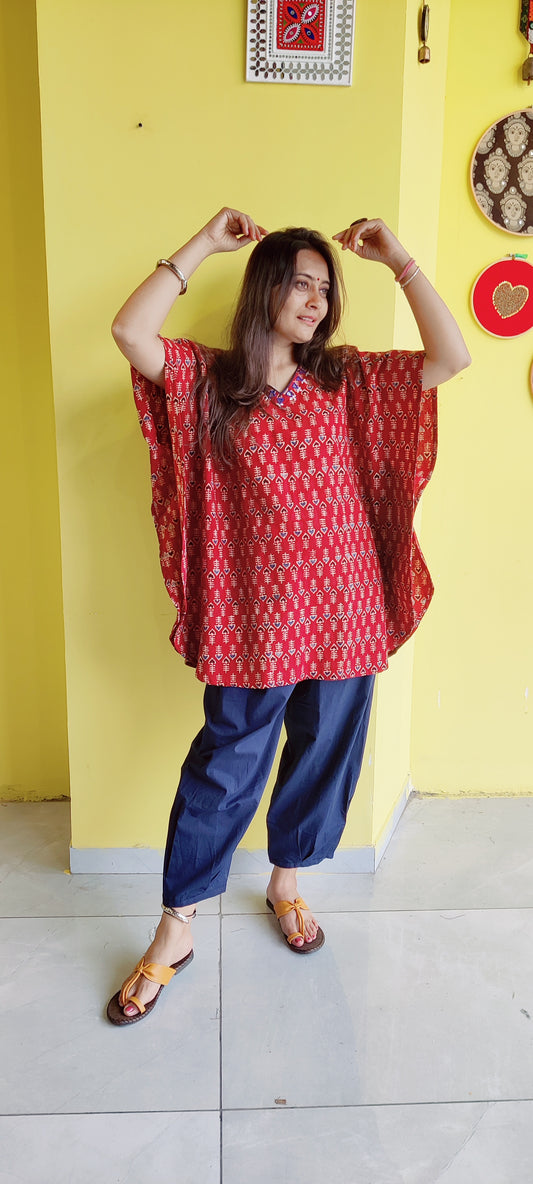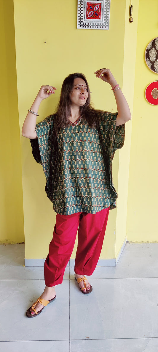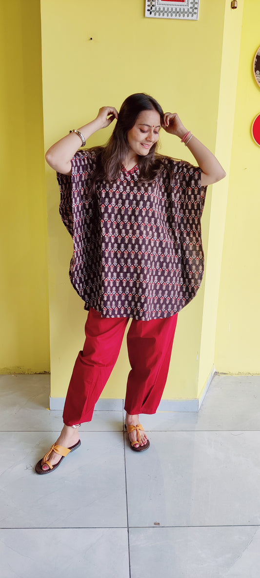"Ankita"Maroon Natural cotton kaftan style co-ord set
