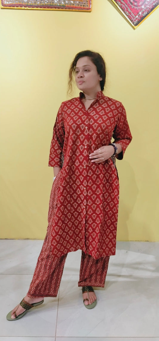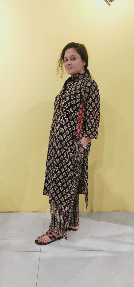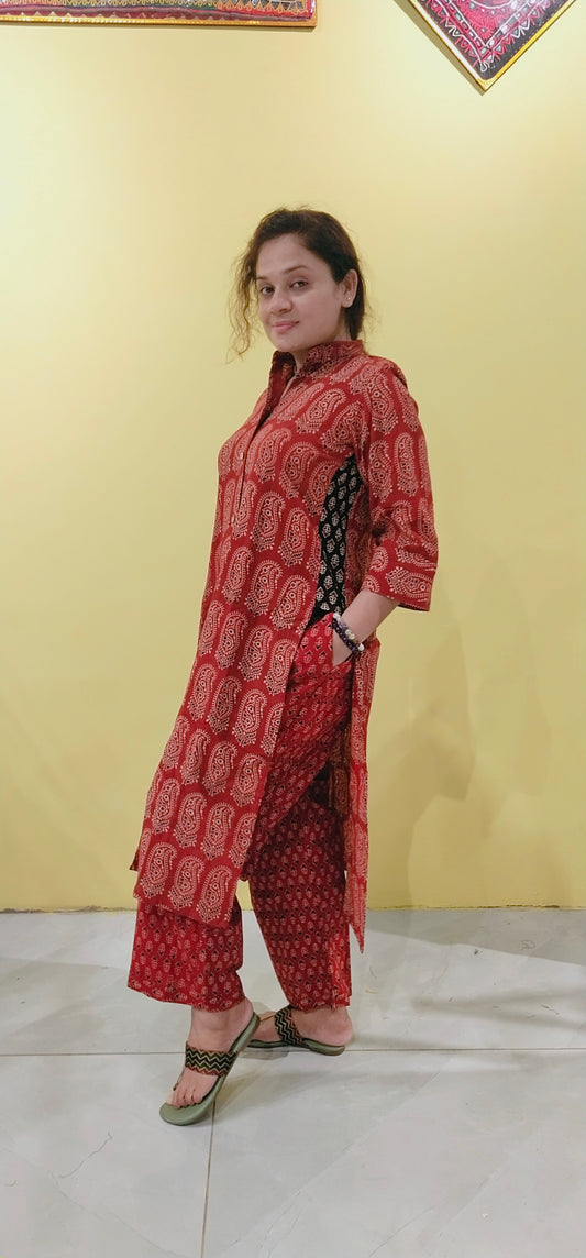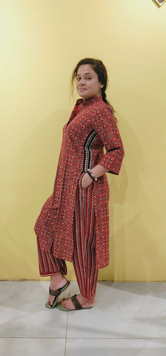 "Satarupa" Ajrakh handblock cotton kurti pant set