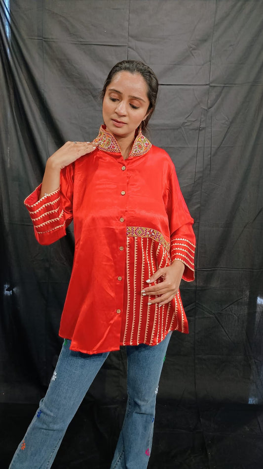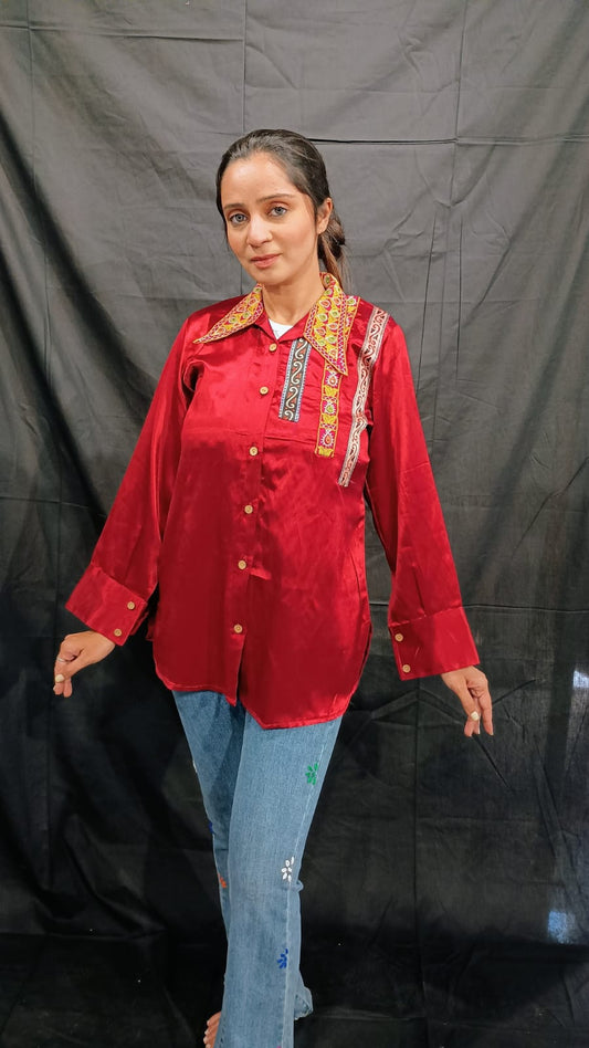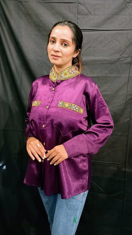 "EMI" PLAIN MASHRU EMBRODERY WORK SHIRT