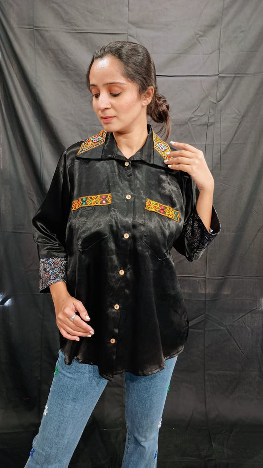 "EMI" PLAIN MASHROO EMBRODERY BLACK SHIRTS