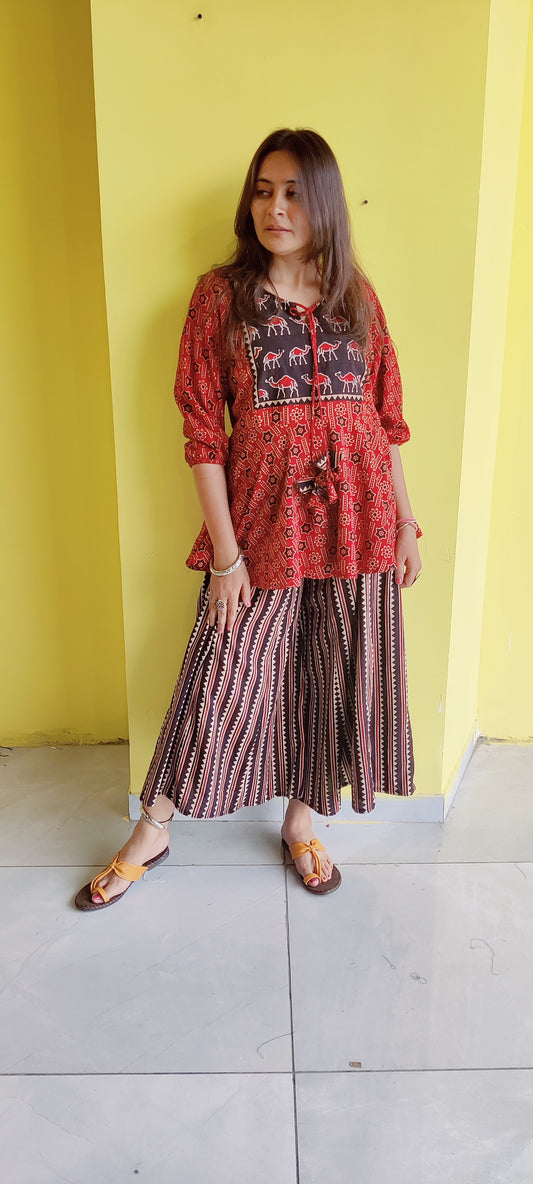 "Kulsum" Ajrakh handblock cotton peplum plazzo co-ord set