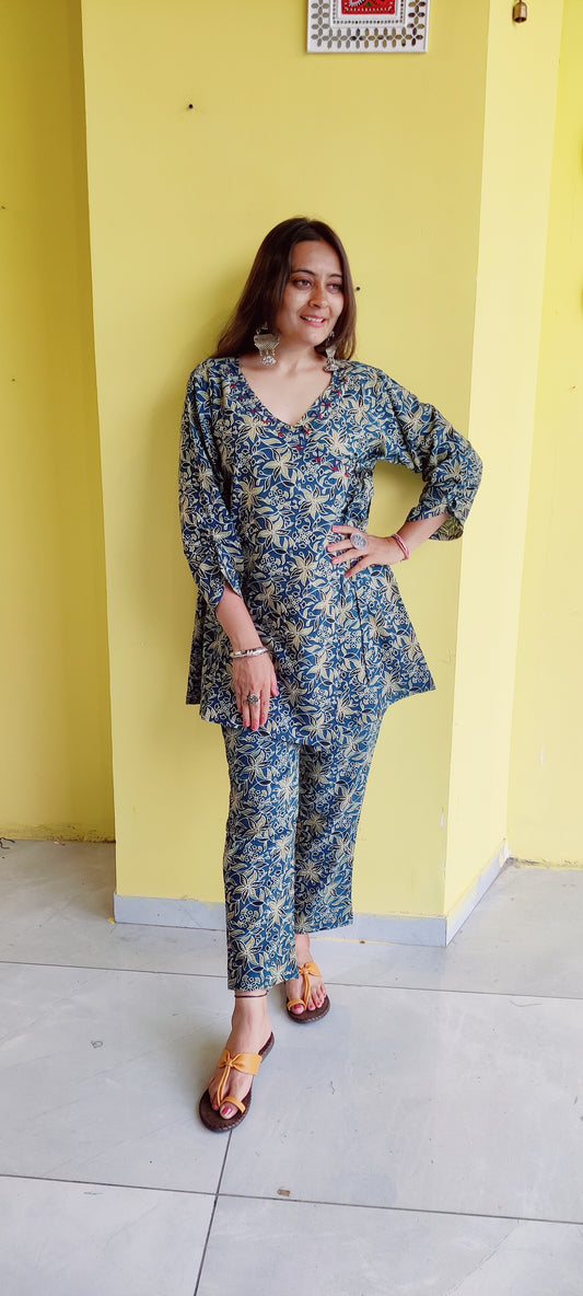 'Jinisha" Natural handblock cotton co-ord set
