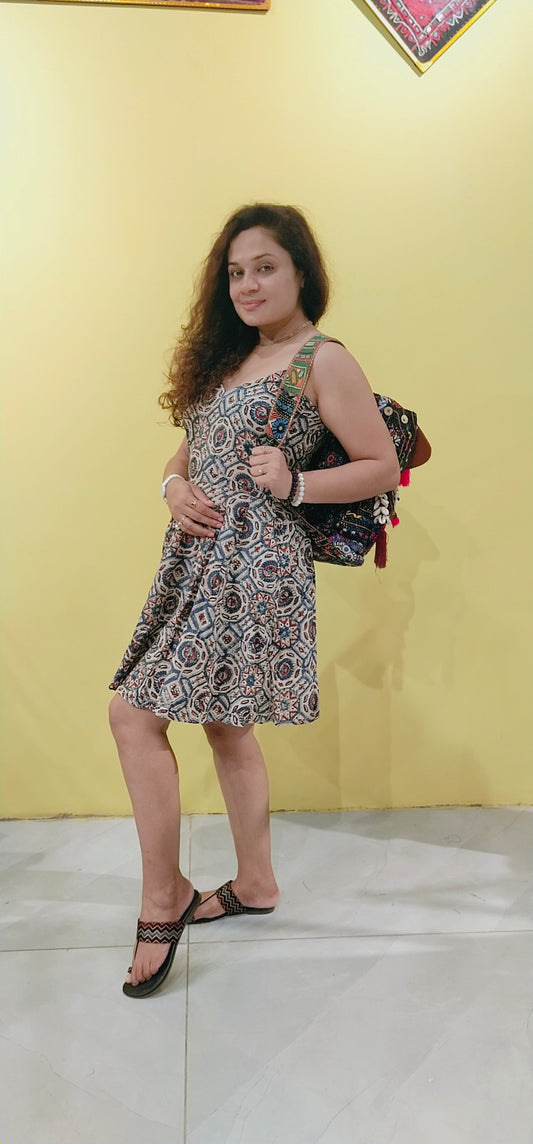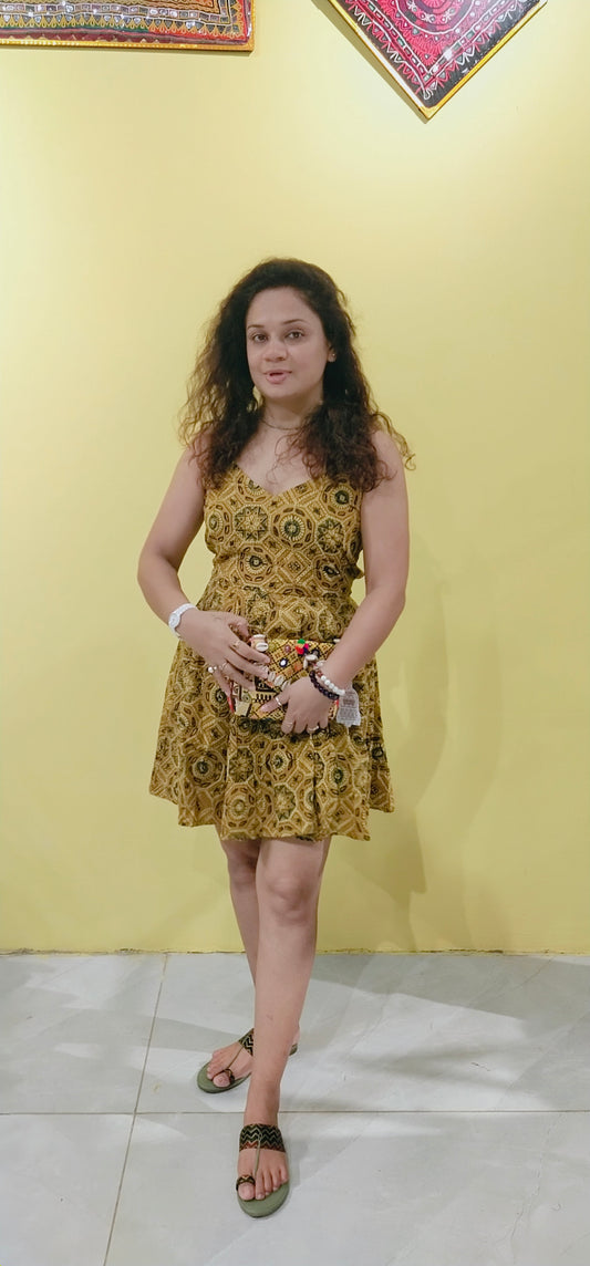 "Malini" Natural handblock cotton one piece