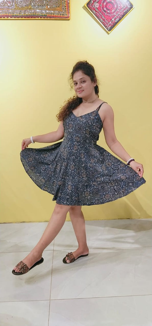 "Malini" Blue natural handblock cotton one piece