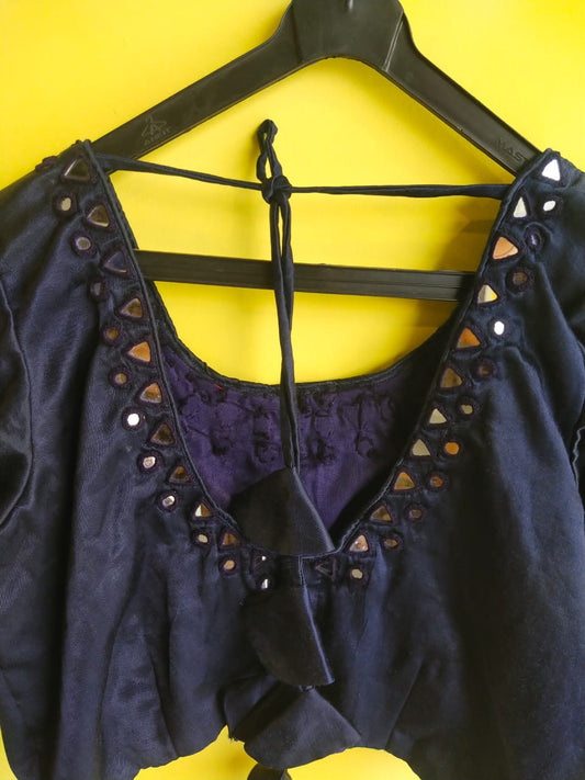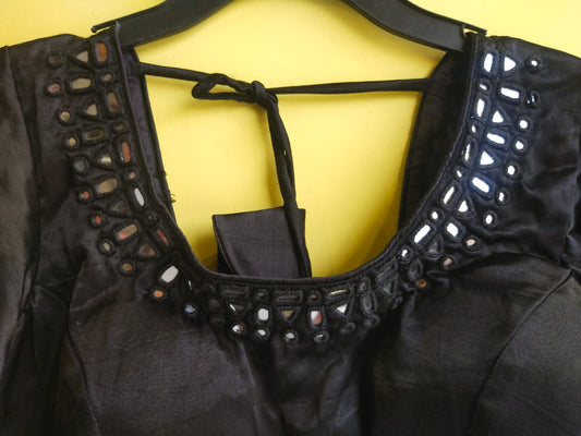 "Foram" Plain Black Mirorr & katha work co-ord set