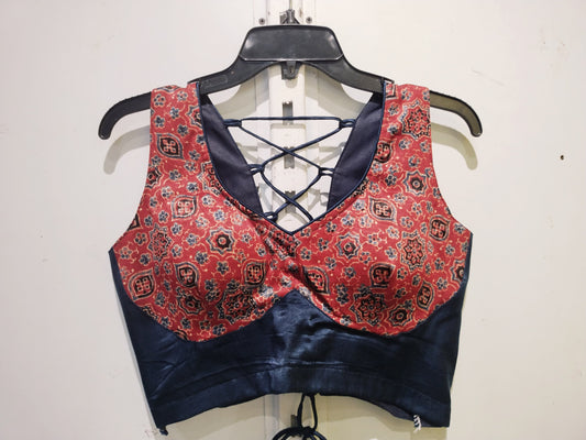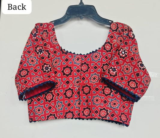 "Veeha" Natural handblock cotton mirror work blouse