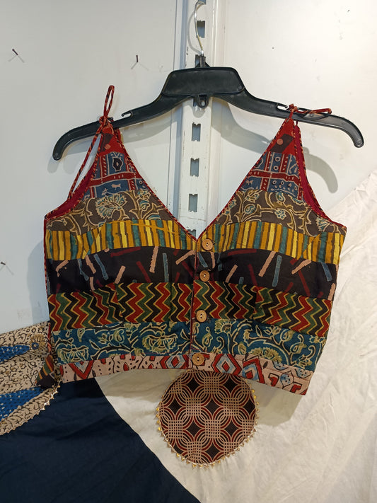 Ajrakh dani print cotton skirt with blouse piece