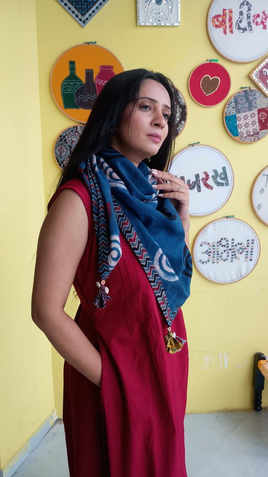 "MIA" Ajrakh natural dyeing on velvet kurti material