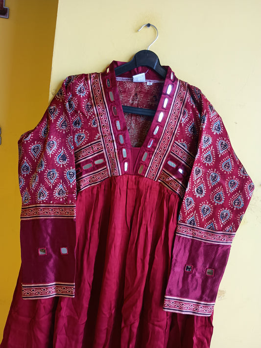 "Alia" Mashroo with modal mirror work alia cut kurti
