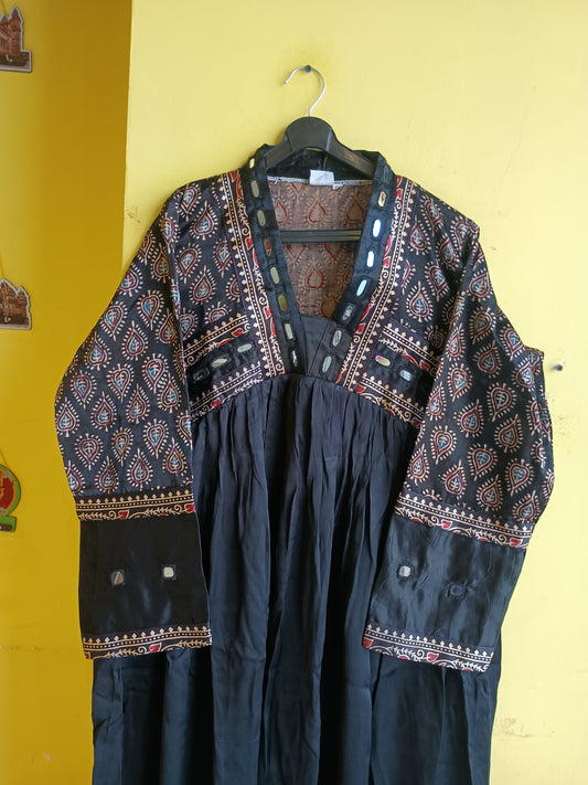 "Alia" Black Mashroo with modal mirror work alia cut kurti