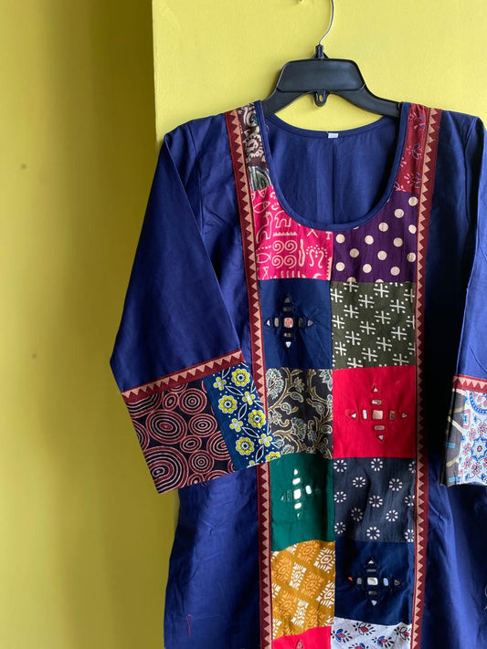 Sold outRAYON RED & BLUE MIRROR WORK KURTI