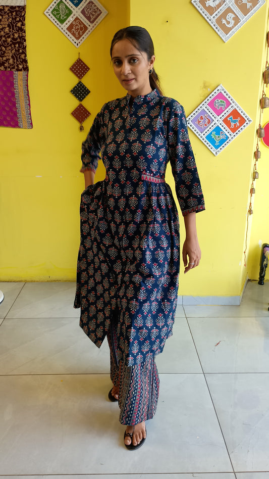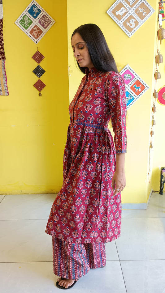 "Kulsum" Ajakh peplum top with kali plazzo co-ord set