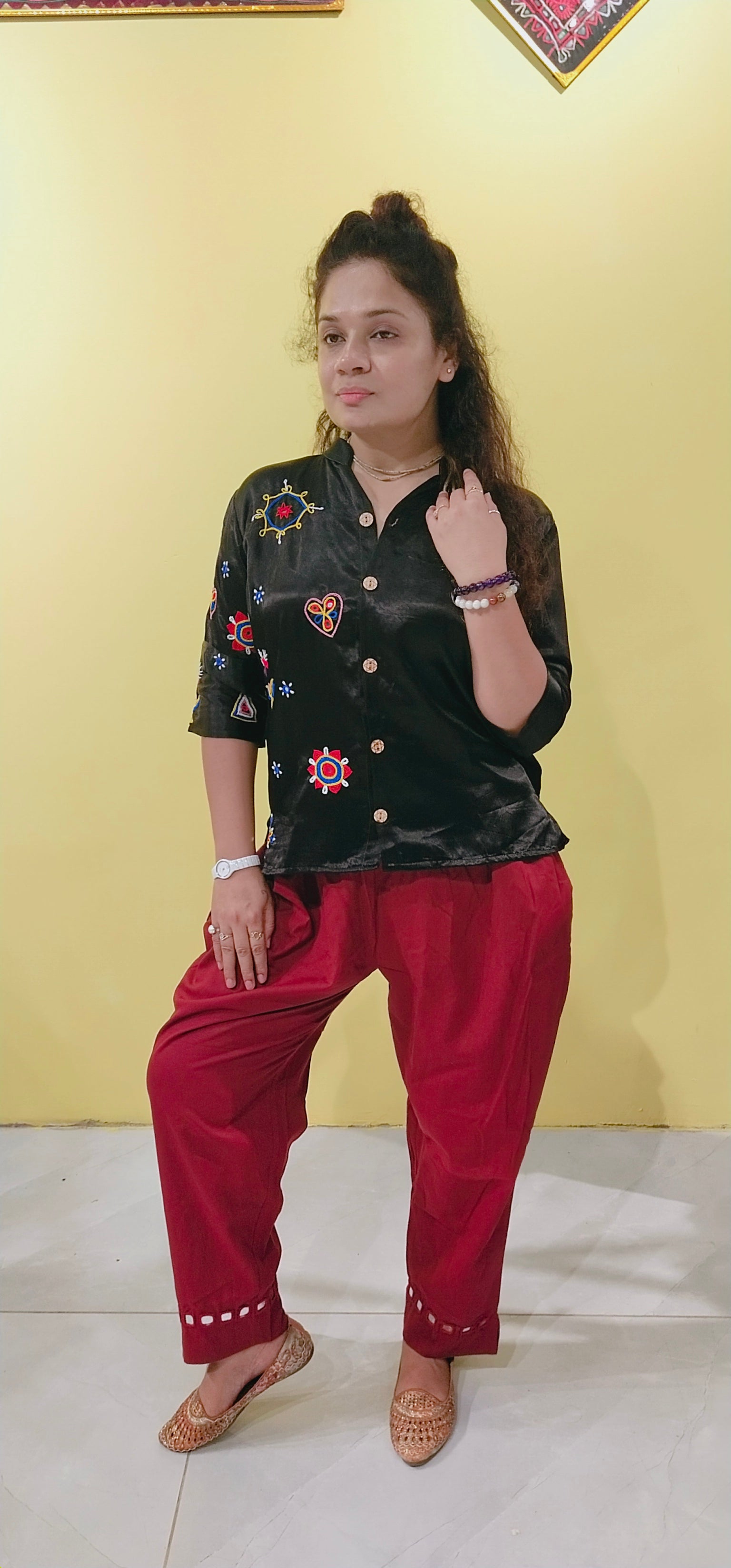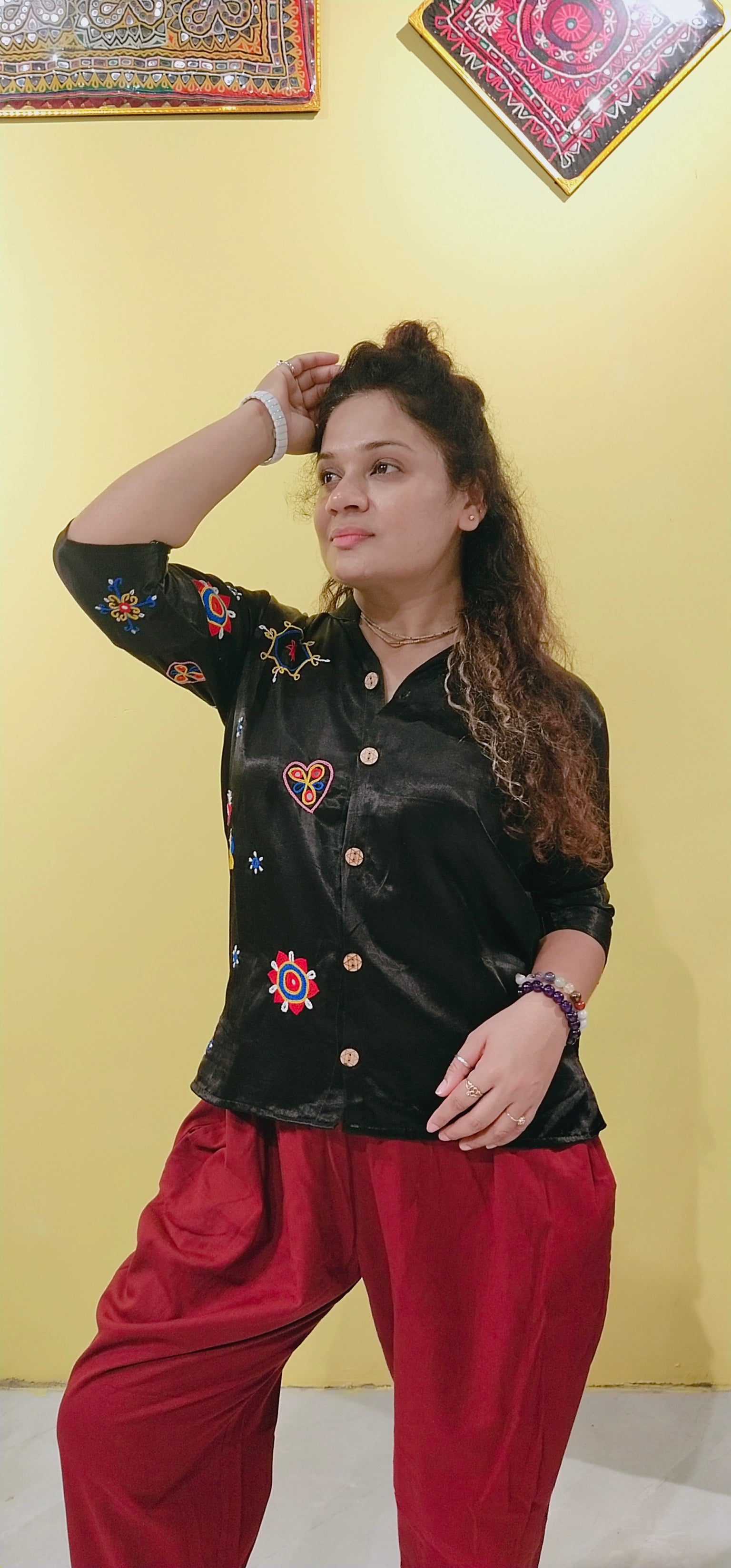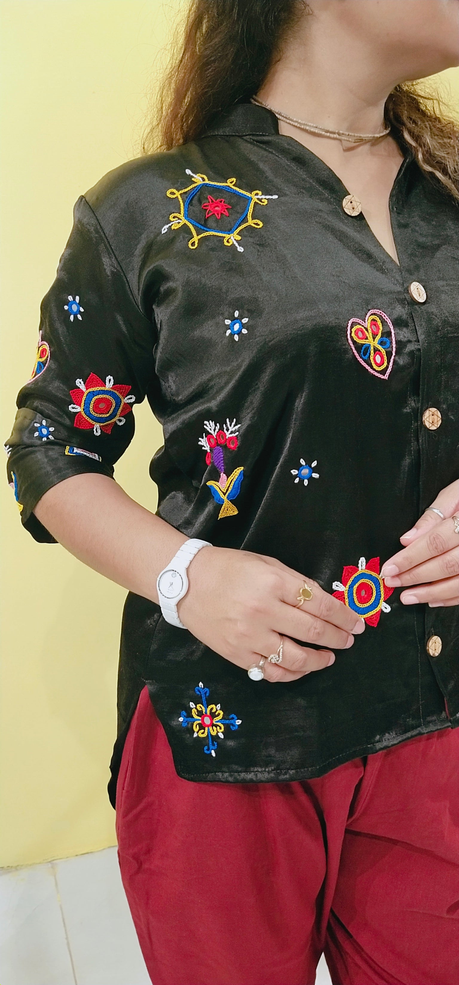Shirt patter- chinese coller with high low pattern, 3/4 th sleeves & kutchi hand work