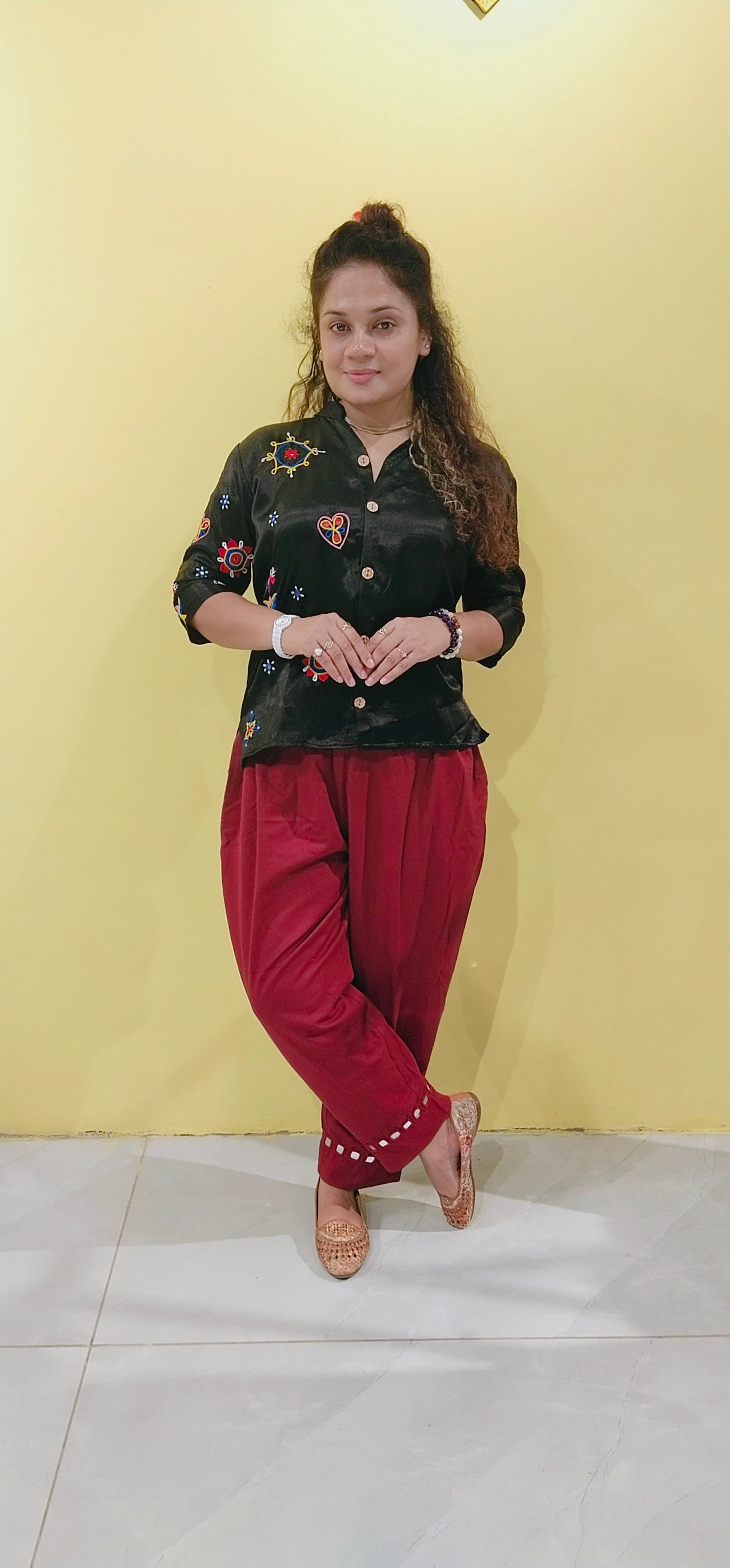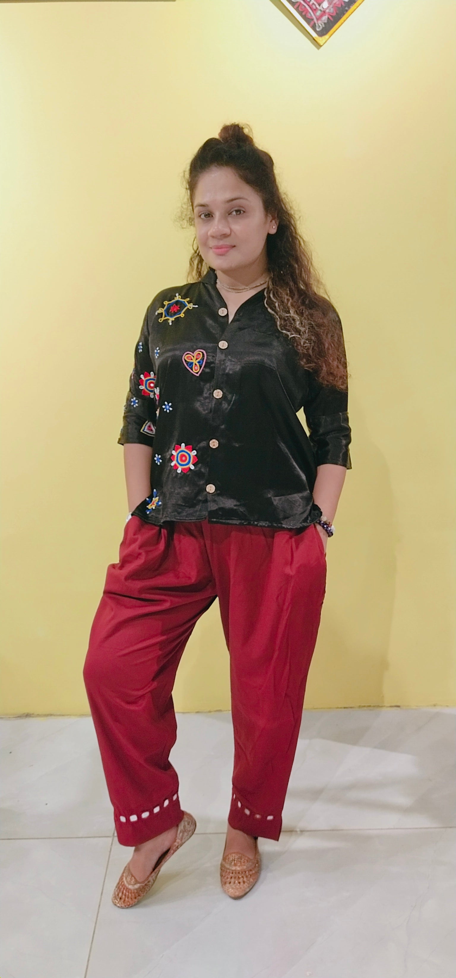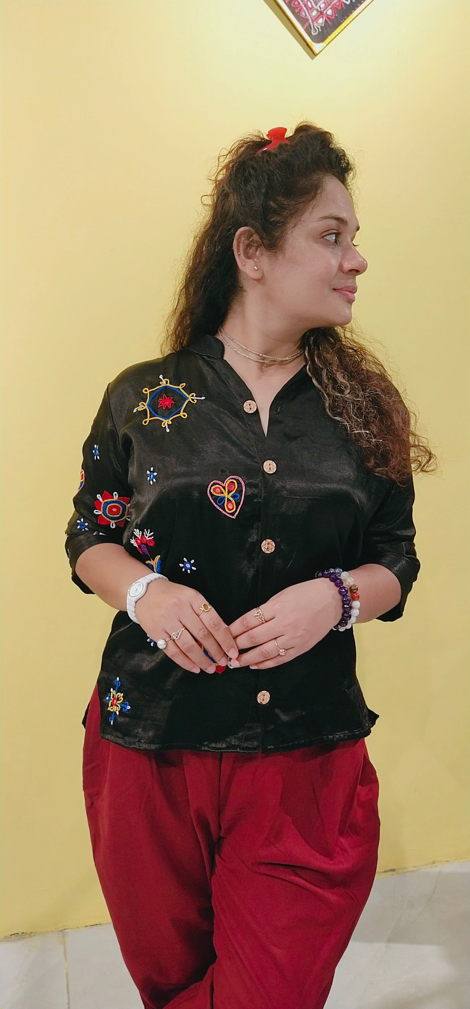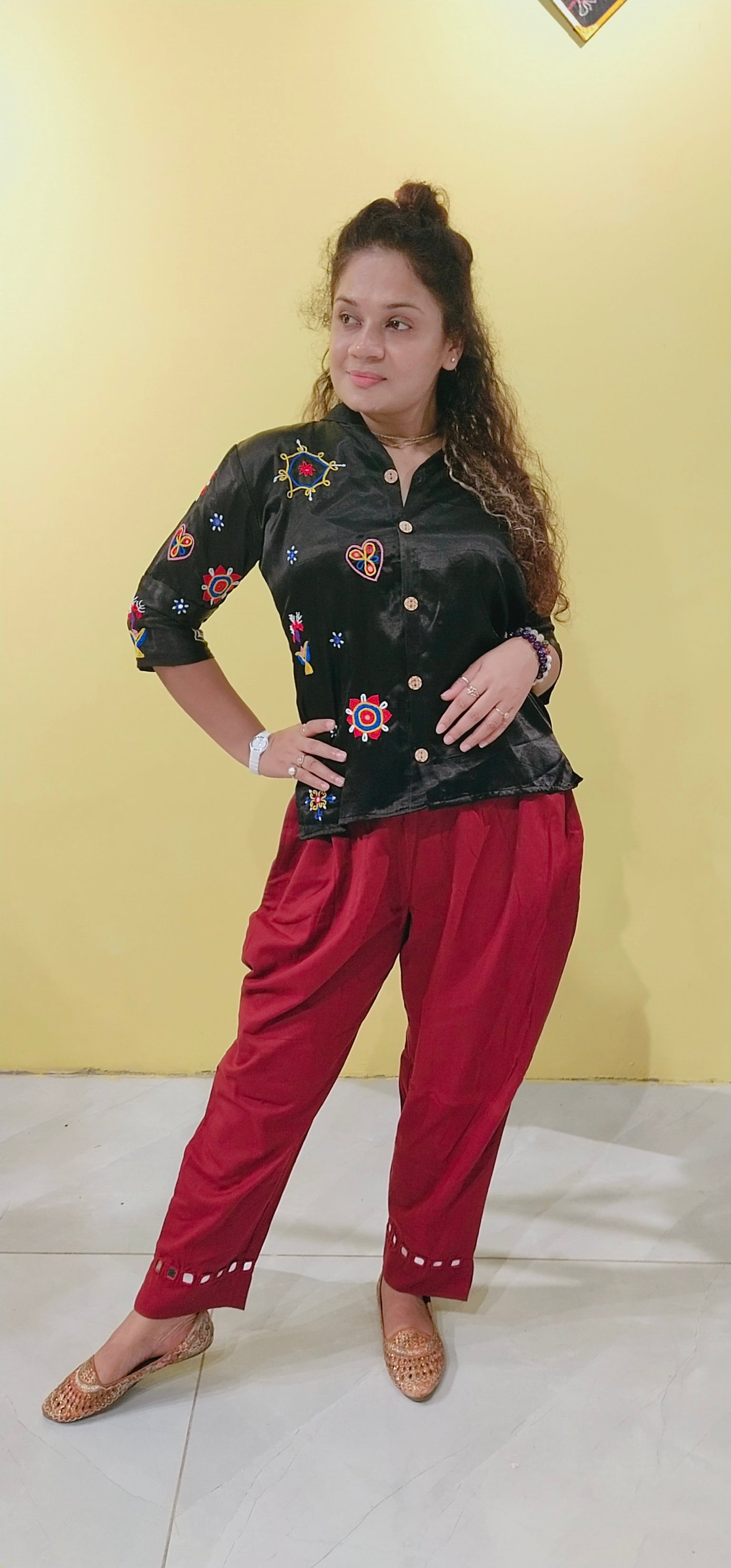 Shirt patter- chinese coller with high low pattern, 3/4 th sleeves & kutchi hand work