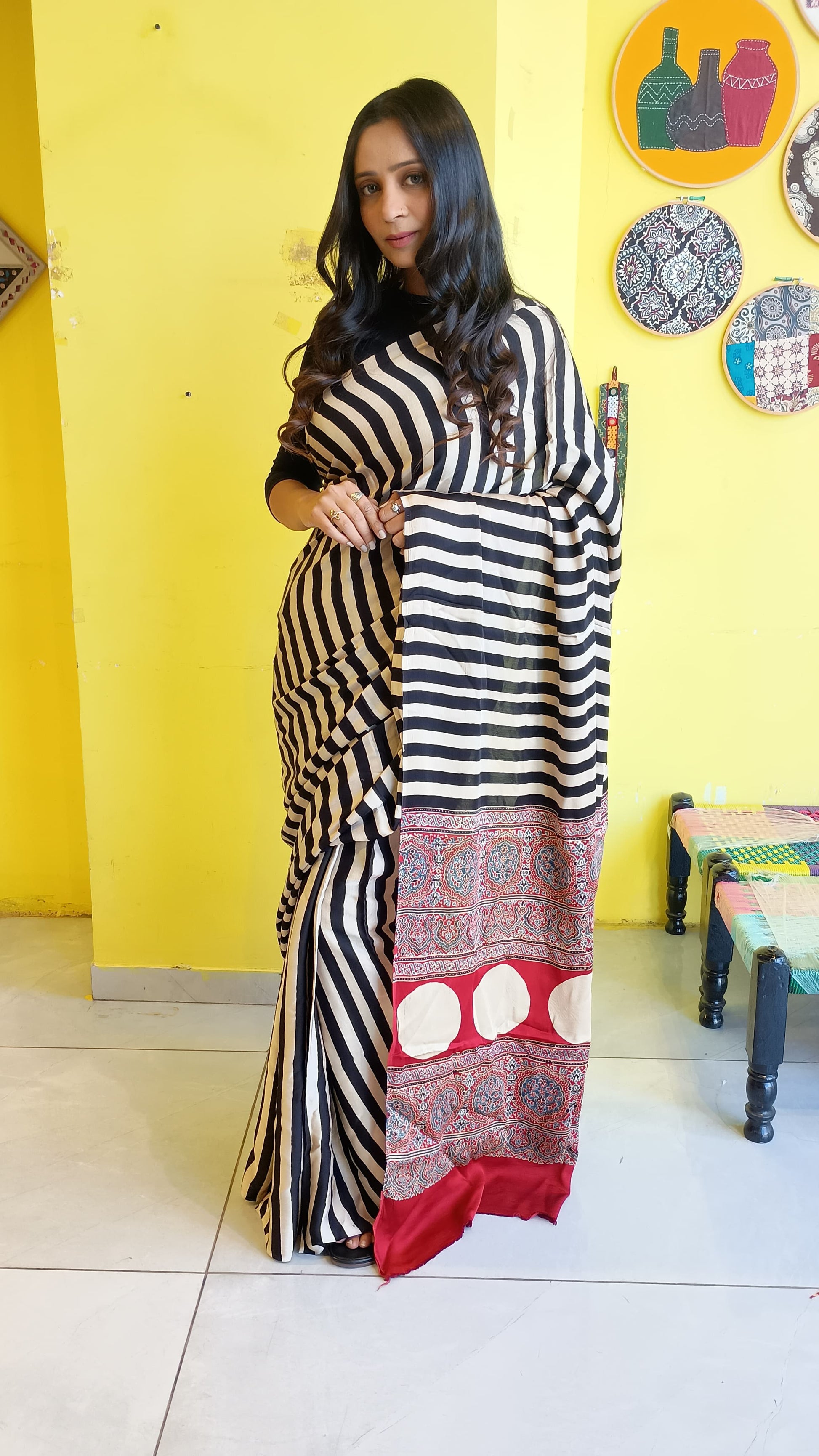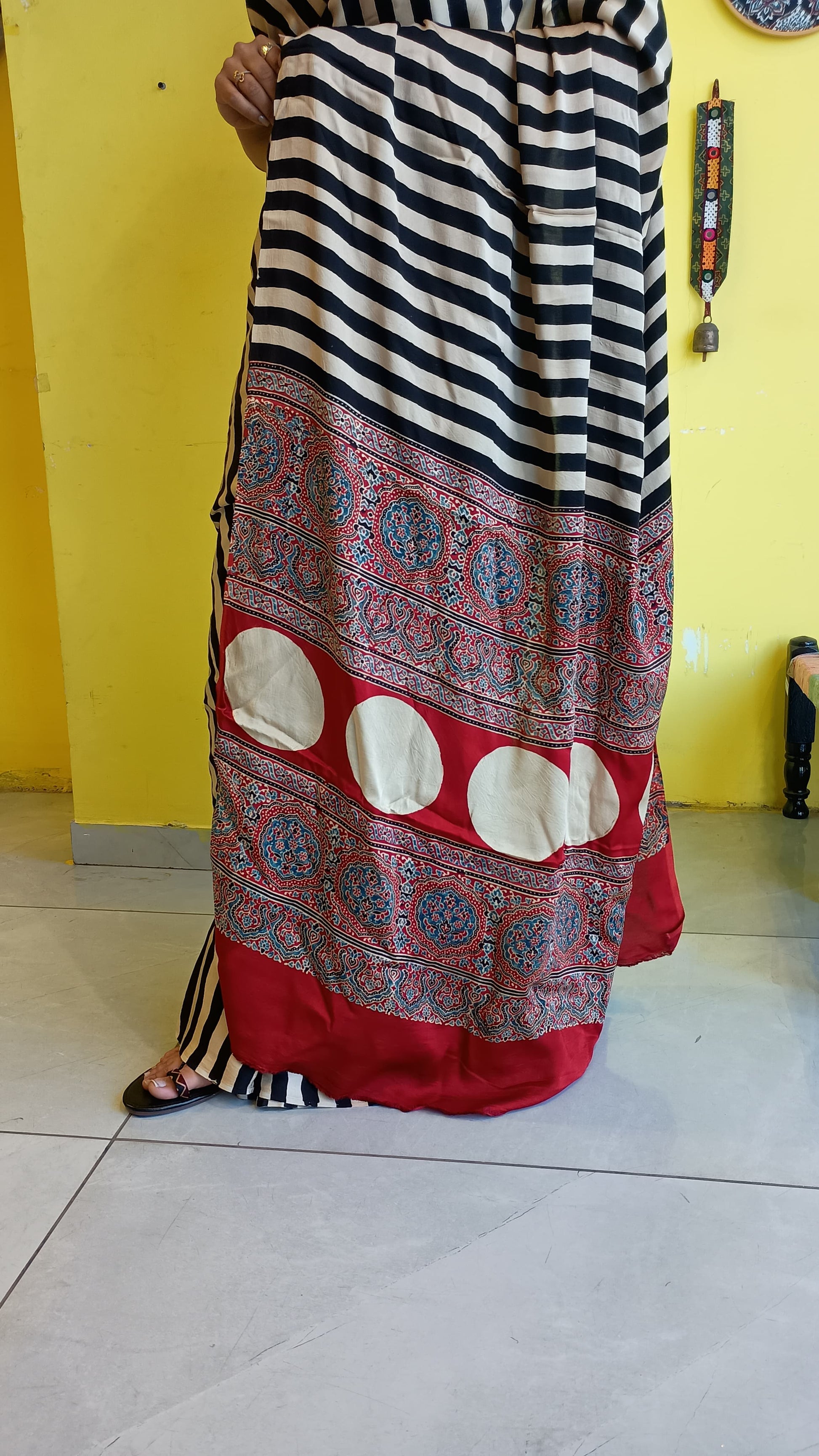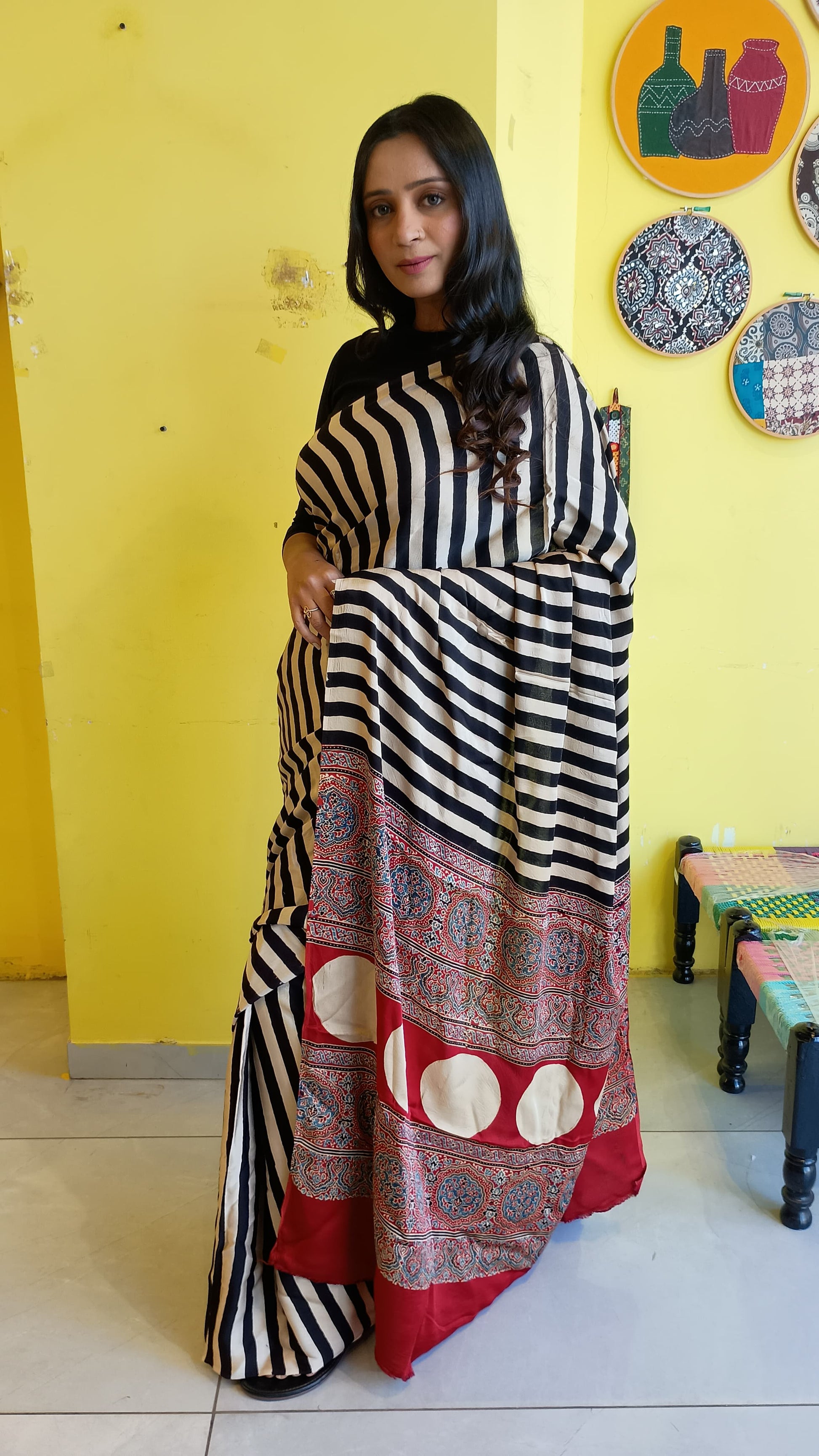 Collection of ajrakh dying hand block printed modal silk saree (blouse piece attached), the dreams of every women!