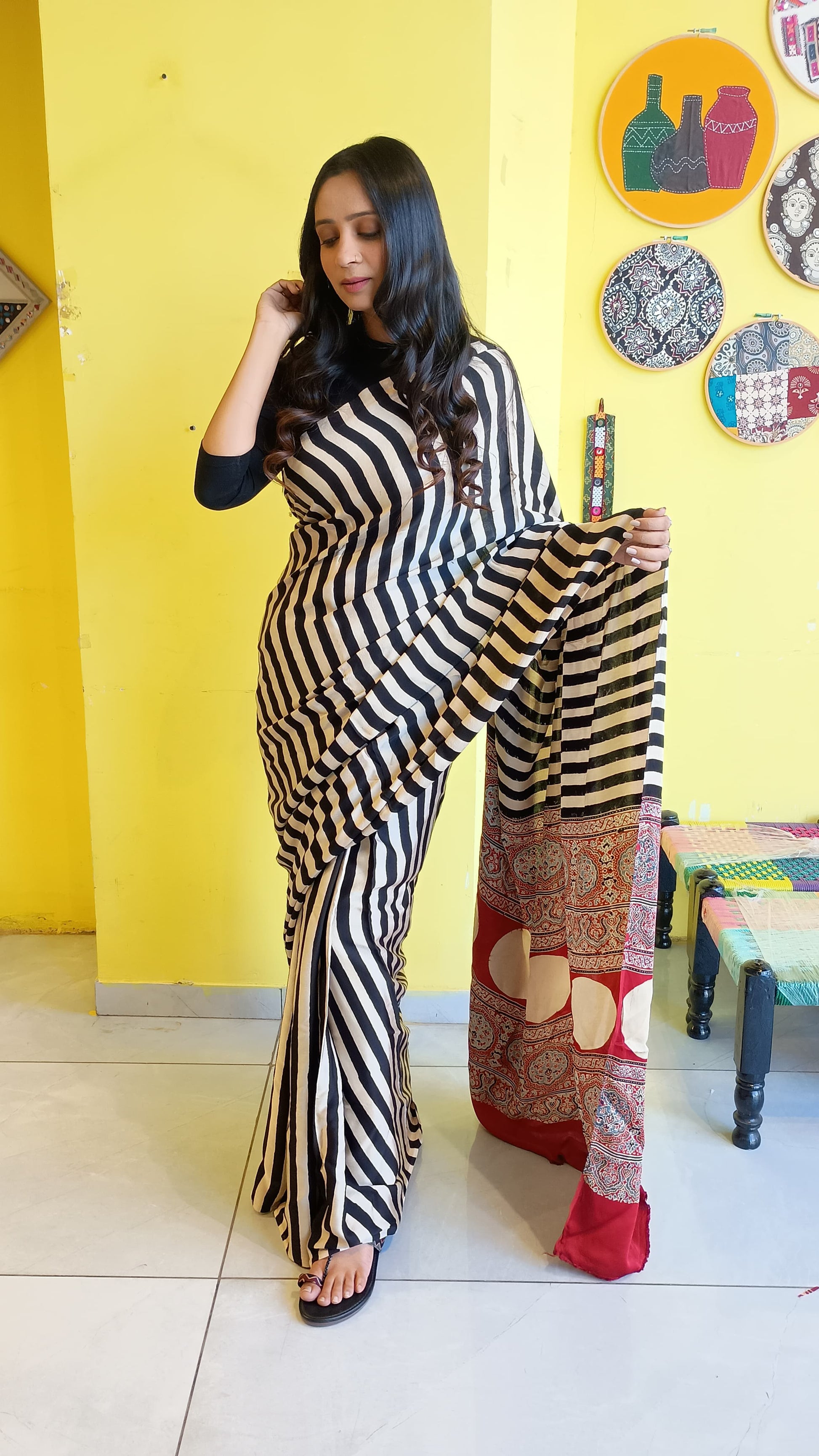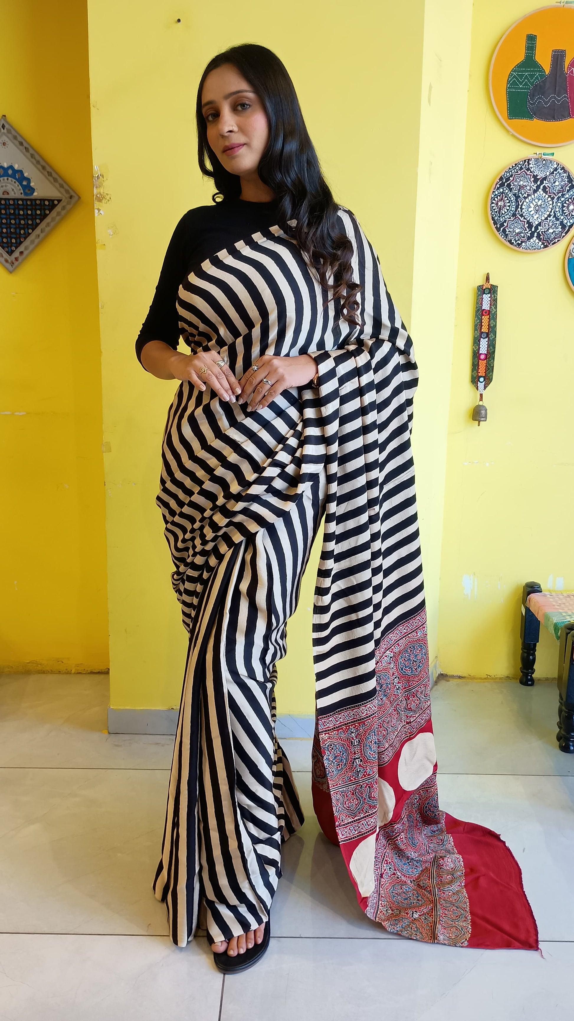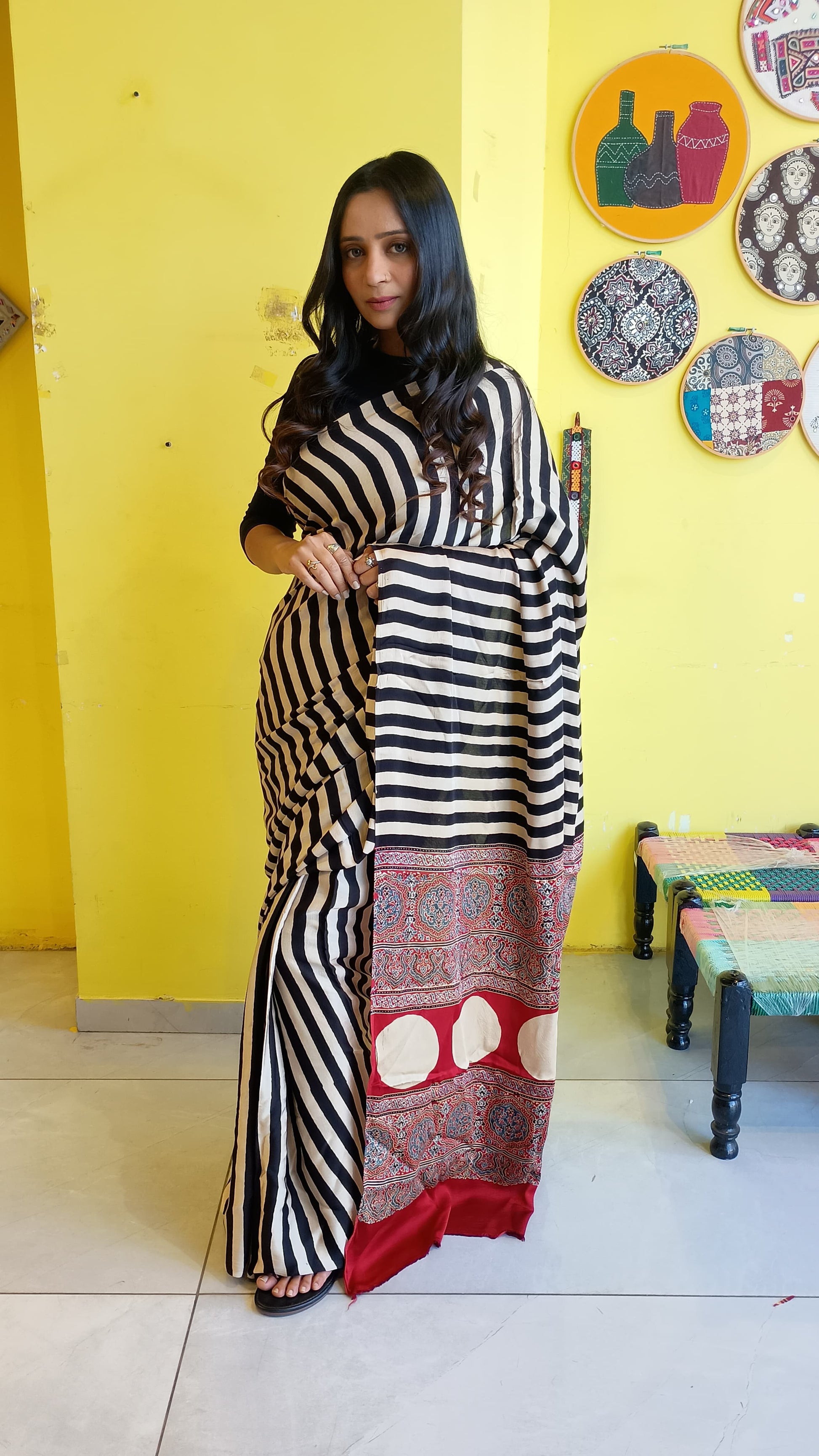 Collection of ajrakh dying hand block printed modal silk saree (blouse piece attached), the dreams of every women!