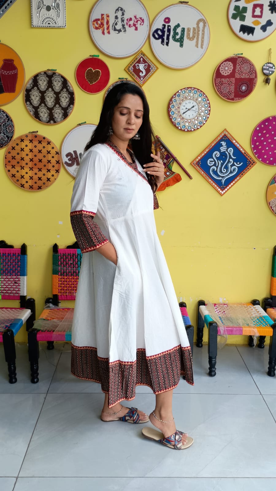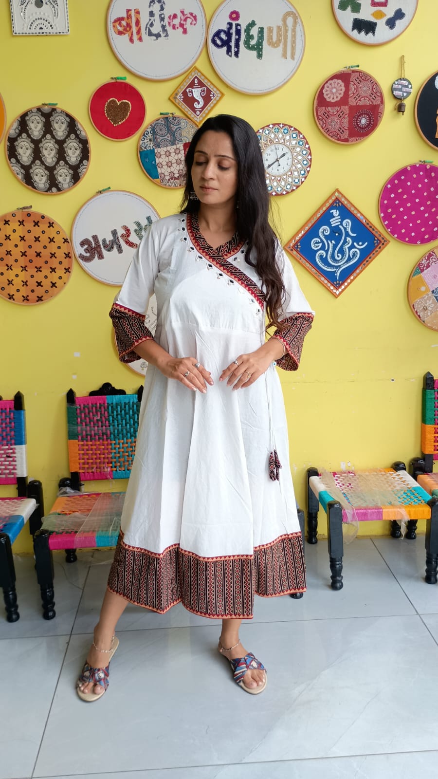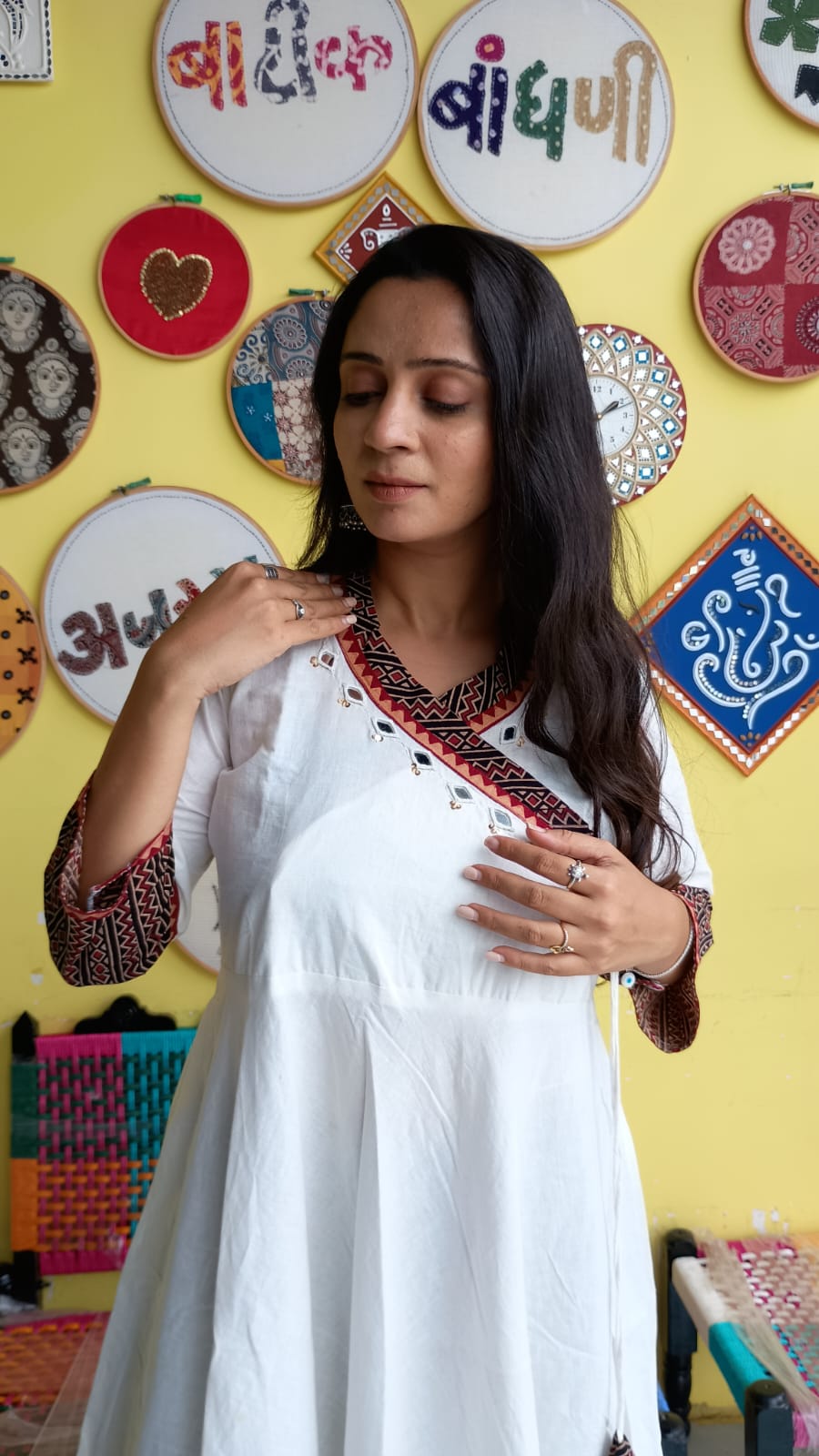 "Nish"White plain cotton kedia style kurti