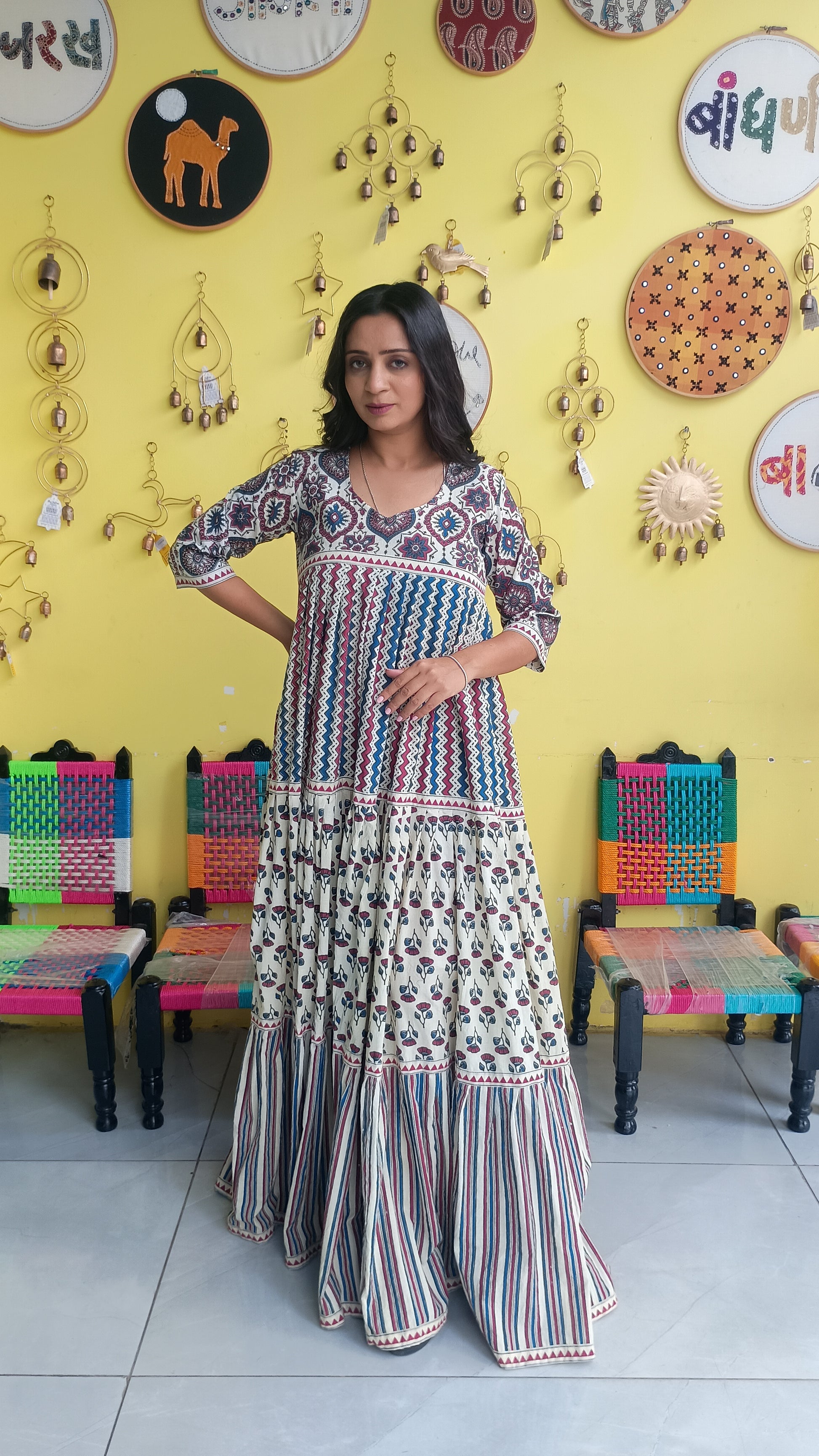 emi natural cotton long gown with beautiful 3 layer frill pattern