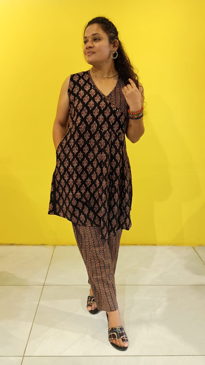 "Vaidehi"Black ajrakh handblock cotton summer special co-ord set